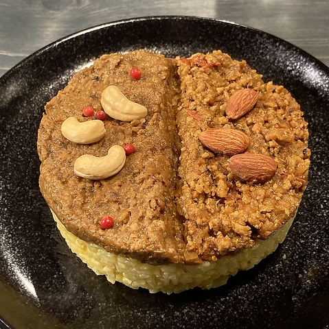 六種類もの無水スパイスカレーを一皿に盛り付けた贅沢な至極の一品となっております!各スパイスカレーの繊細な味の違いを堪能できるのはここだけ!と好評いただいております!