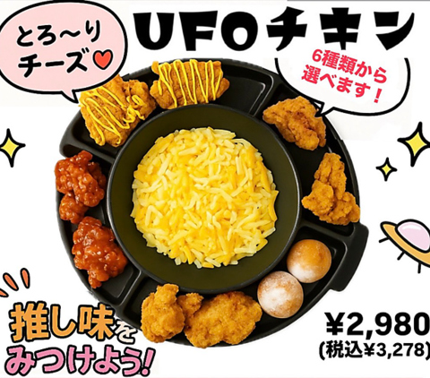 フライド・ヤンニョムチェダー・ヤンニョムチキン・ハニーバターチキン・チェダーチーズ・にんにく醤油の6種類から選べる!あつあつとろ~りチーズをたーっぷりつけて召し上がれ♪
