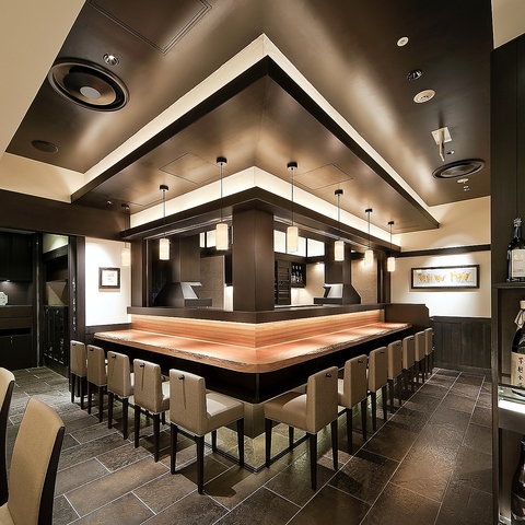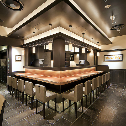 串の坊ならではの臨場感あふれるカウンター席で、揚げたての高級串カツを職人技とともにご堪能ください。ご家族との食事はもちろん、大事なデートや記念日にもふさわしい老舗の和空間です。