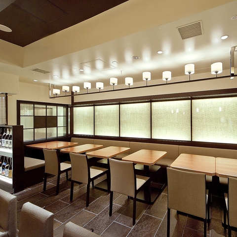 落ち着いた和空間で、旬食材をそのまま戴く高級串カツ。広々テーブル席はご家族との食事、女子会にも最適。
