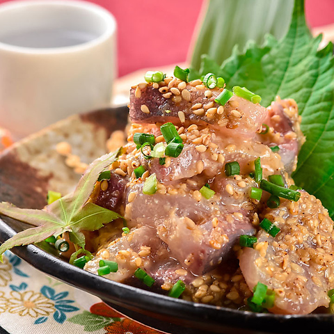 博多でおなじみの刺身のごましょうゆ漬けにゴマを和えて♪