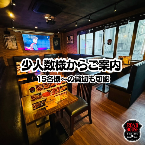 【少人数貸切は貸切ダイニングで♪】落ち着いた店内は年齢を問わず、多くのお客様から支持を得ています♪会社での宴会、パーティ、イベントなどにもGOOD♪2階は貸切個室で最大15名~大人数宴会もOKです!ビアバーロードハウスのカウンターには毎日ビール好きのお客様が好きなビールの新発見に訪れます♪