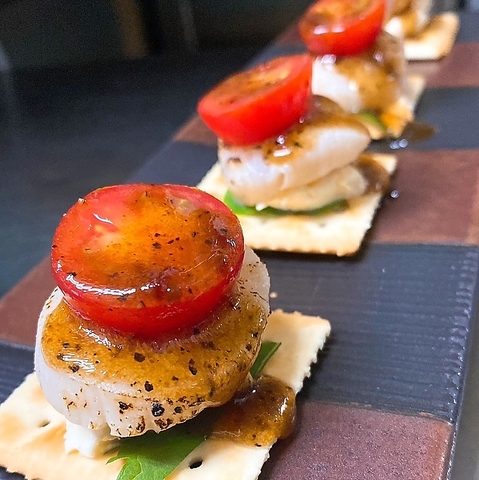 お酒との相性を考え抜いた創作メニューを豊富にご用意しております。炙り貝柱と濃厚な乳製品を合わせた一皿は、香ばしさとコクが絶妙に調和する逸品です。手作りの温かみを感じる料理の数々は、どれを注文しても満足いただける内容ばかり。こだわりの一品を囲みながら、至福のひとときをゆったりとお過ごしください。