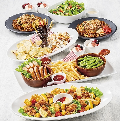 手軽につまめる軽食や、麺・ごはんものなどのしっかりとしたお食事、ついつい手が伸びるデザートまで、フードメニューも充実!パーティーシーンに最適なプレートも多数! 詳しくは料理・ドリンク・コースページへ◎