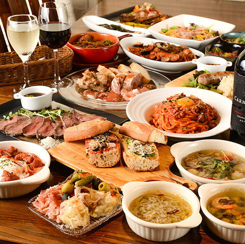 2H飲み放題付きコースは\4980~。メイン料理に【上州せせらぎポークのロースト】、パスタも絶品です。