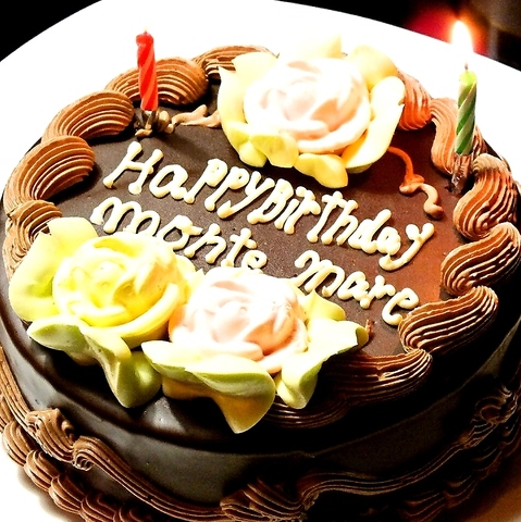 大切な記念日にはホールケーキをサービス致します!結婚式二次会など人数はご相談ください!女子会記念日でも4名様以上でデザートプレートサービス!サプライズも!