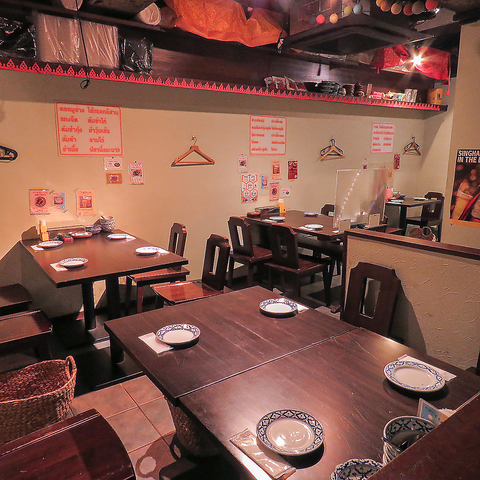 【開放感あるフロア席は最大20名まで着席可能!】店内は広々とした屋台空間。人気のタイ料理からがっつりタイの地元感あふれる料理まで、品ぞろえには自信あり!カジュアルなドリンクからタイのドリンクまで取り揃えた飲み放題もご用意しておりますので、気軽にお申し付けください♪