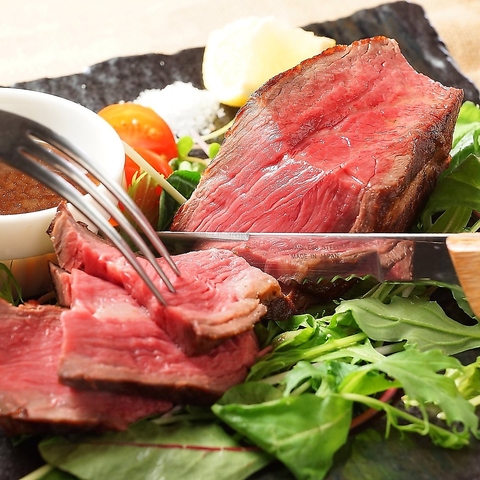 鍛冶を代表する不動の人気メニュー「ラクレットチーズ掛け黒毛和牛のレアステーキ」!柔らかいお肉とまろやかなチーズは相性抜群!そのほかにも自慢の黒毛和牛、チーズの逸品を豊富にご用意!