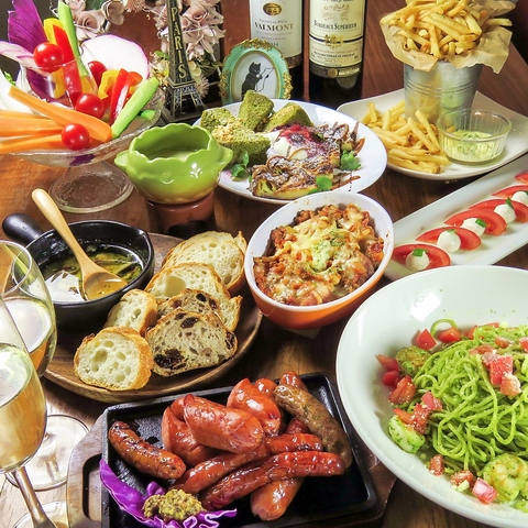 *財布もお腹も満足♪*80種類以上の2.5時間飲み放題付き!7品4000円!女性に人気のアヒージョ・旬の食材を使ったパスタに『メッセージ付き』デザートプレート等ボリュームある内容をご提供♪ウェディング専用ケーキ&プロジェクター・音響・マイクも無料貸し出し!下見も大歓迎なのでご相談下さい♪
