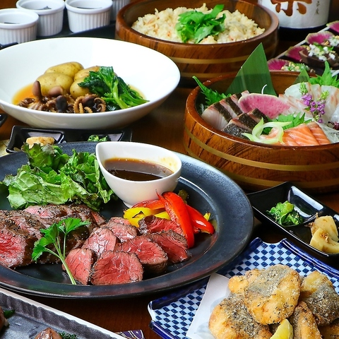 《飲み会・宴会に》「「熟成鯛と鮮魚の3種盛り合わせ」」や「熟成肉の赤身ロースト」など充実の内容が魅力のコース。会社宴会などで人気の、質・量ともに大満足の内容が魅力です。