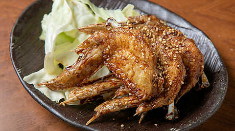 当店の名物!「手羽先唐揚げ」は、外はカリッと香ばしく、中はふっくらジューシーに仕上げた逸品です。こだわった味付けが、肉の旨味を最大限に引き立てます。食べ始めたら止まらない、まさに「やみつき」の味。キンキンに冷えたビールとの相性もぴったりです。