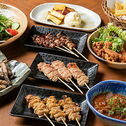 自慢の焼き鳥や、旬のお造りを2種盛りでご用意。 脇を固める、サラダ、揚げ物、一品料理、〆のご飯ものまで盛りだくさんのラインナップ。「焼き鳥も食べたいけど、新鮮な魚も外せない」という方にこそお召し上がりいただきたい、充実の内容です。 会社の飲み会やご友人同士のお集まりなど、様々なシーンにおすすめです。
