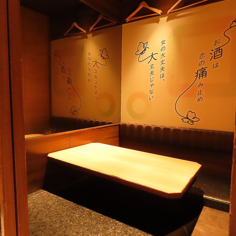 全席ドア付完全個室♪少人数様用空間!デートや合コンに人気な席!落ち着いたお席で周りを気にせず楽しめること間違いなし!誕生日や記念日、合コンでは大切な雰囲気作りから役にたてる個室となっております♪サプライズ演出もさせていただきますのでお問合せください!