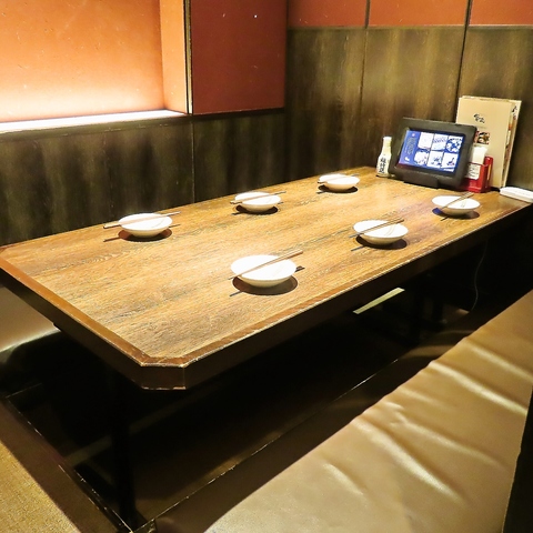 個室のテーブル席は、ごゆっくりとお食事を楽しむことが可能です。宴会コースや美味しい逸品料理、種類豊富なドリンクをご用意してお待ちしております。