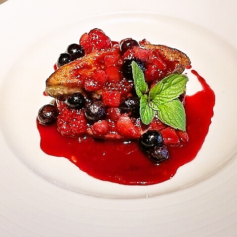 フォアグラのポワレ マディラワインソース 季節のフルーツと共に