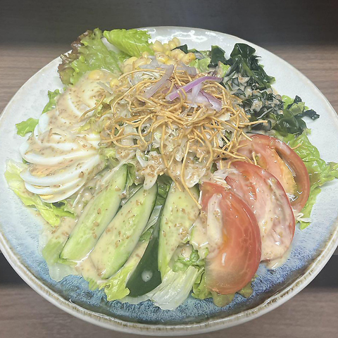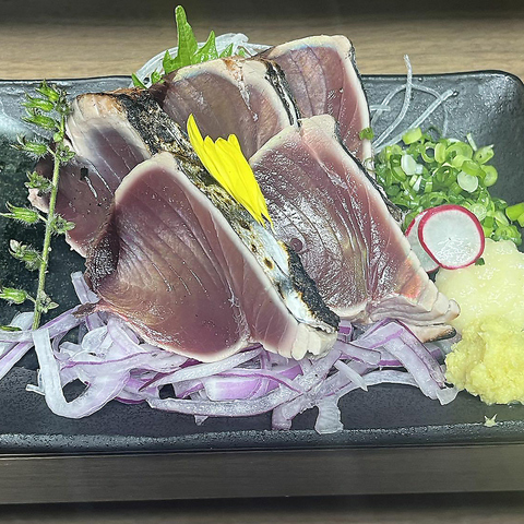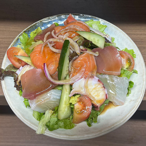 鮮度にこだわった季節の魚を使ったお刺身3点盛り合わせ。見た目にも美しい盛り付けで、食事のスタートにぴったり。内容は仕入れによって変わるため、訪れるたびに違った味わいが楽しめます。