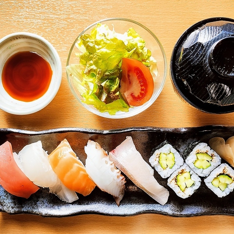 新鮮な魚を使ったお寿司の握りセットです。お好きなネタを色々頼める単品も人気ですが、迷ってしまう方には当店イチオシの握りセットがおすすめ!美味しいお寿司と美味しいお酒で存分にお楽しみください◎素敵な店内なので、お一人様ランチやデート、ご友人との飲み会にもぴったりです。