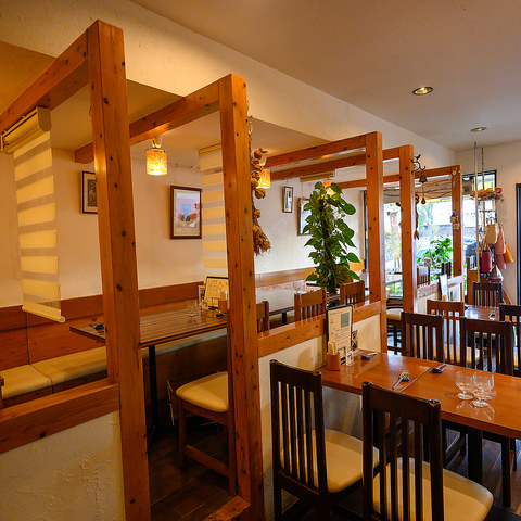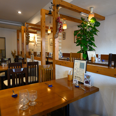 Komugicoの店内は、木の温もりと落ち着いた照明が調和したカジュアル空間。テーブル席中心で、女子会やデートはもちろん、宴会や貸切利用にも最適です。ランチもディナーも気軽に立ち寄れ、本格パスタやピザをシェアしながら、ゆったりとした時間を楽しめる居心地の良いお店です。