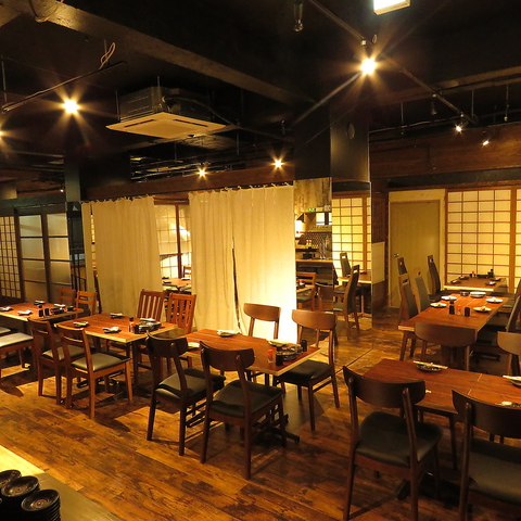 2階建ての広々とした店内は人数に合わせて使えるテーブル個室を完備!ワンフロアで最大100名OK!個室も完備
