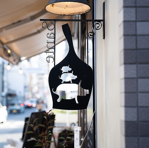 ワインボトルがずらりと並ぶ圧巻のコンクリート壁にはスタッフによる力作アート!豚さんの絵が描かれてるのでよく見てみて下さい♪