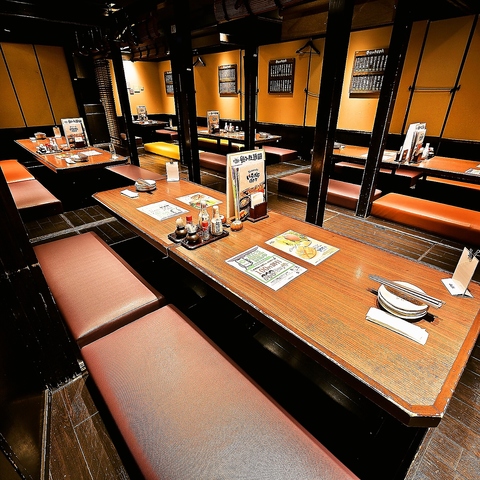 大人数での宴会に最適な居酒屋として、広々としたテーブル席をご用意。飲み放題付きコースも充実しており、個室の利用も可能です。設備や環境が整っているので、幹事様が安心してご予約いただけます。
