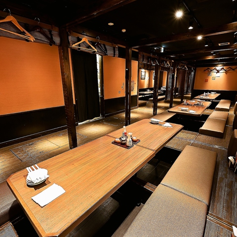 掘りごたつの個室をご用意!お仕事帰りでも、足の疲れを気にせずお食事をお楽しみいただけます♪人数等、お気軽にご相談ください。各種ご予約をお待ちしております!