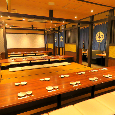 掘りごたつ式宴会個室は最大42名までご利用可能♪その他、人数に応じたテーブル席や個室もご用意しています!はなの舞 結城店★