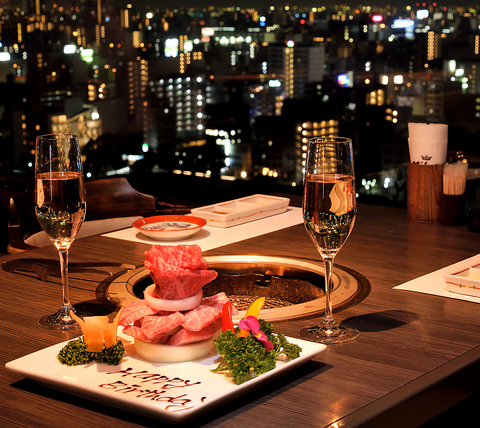 全国銘柄黒毛和牛炭火焼肉を、壮大な夜景とともにご賞味ください。