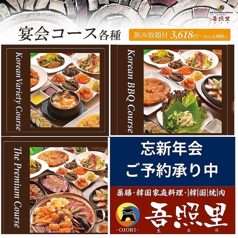 吾照里おすすめのオリジナルセット!選べる肉料理をジューシーに鉄板で焼き、サンチュを韓国味噌のサムジャンを付けて、ねぎムチム、季節の新鮮野菜に包んで♪大人気の焼肉コースはサムギョプサルやチヂミ、焼肉3種盛り合わせ等、人気メニューの詰め合わせ!品川でのご宴会、焼肉には是非一度ご賞味下さい。