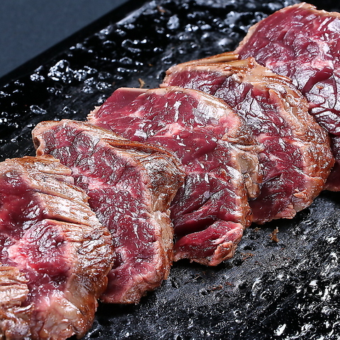 味わい深い厳選した牛の赤身肉を熱々に熱した鉄板プレートにのせてご提供致します。