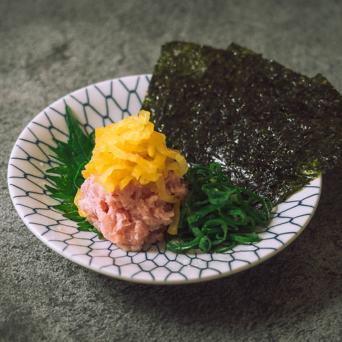 水揚げから一度も冷凍せずに提供される生本鮪。その肉質と脂乗りは鮪の中でも「最上質」と名乗ることができます。冷凍鮪では味わえない旨みやサシの美しさをぜひ、ご堪能ください。