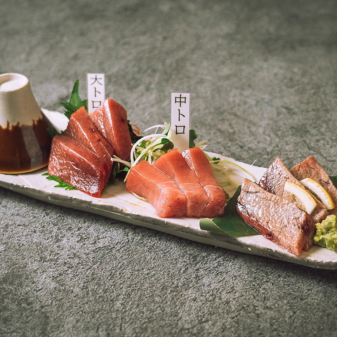 毎日、豊洲から直送される鮮魚を、その季節に最も美味しい状態でご提供いたします。自慢のお刺身盛り合わせには生本鮪を使用し、鮮度抜群の味わいをご堪能いただけます。さらに、焼き物や煮付けも日替わりでご用意!水揚げに合わせた最適な調理法で仕上げ、素材本来の旨みを引き出した逸品料理をお楽しみください。