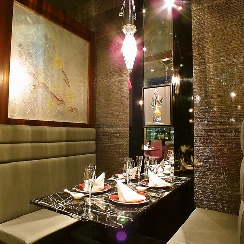 ≪当店自慢のラグジュアリーな空間つくり≫少人数様でもお隣が気にならないBOX席完備。テーブルは広いのでお取り分けにもいいです。お仕事帰りや、お仲間とのお食事会にはこちらのお席はぴったりです。当店自慢の中華料理やワイン等を存分にご堪能ください。他にも各シーンに合わせたオススメのお席をご用意しております。