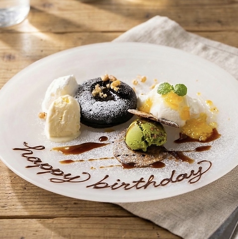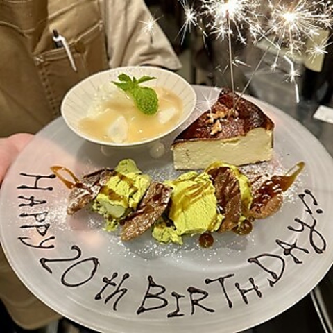 誕生日や記念日等にご利用下さい!希望のメッセージがありましたら前日までにご連絡お待ちしております!花火付きデザートプレート1780円(税込)