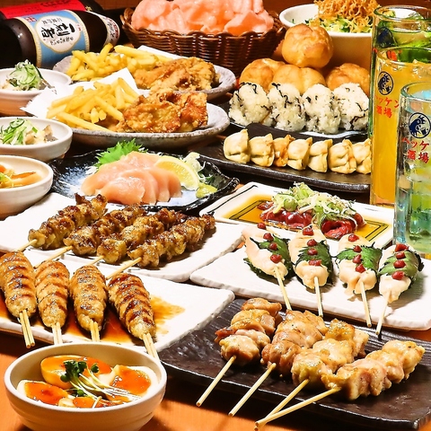名物のもも焼・ヤミツキとり皮をはじめ、様々な料理を堪能できるコースを各種ご用意しております。心も体も温まるもつ鍋やちりとり鍋が付いたコースもございますので、お好みやシーンに合わせてご利用ください。全コース、ビールありの飲み放題付きで、お酒も存分にお楽しみいただけます♪