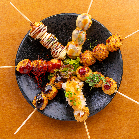 今日は“つくね気分”というあなたに。定番から変わり種まで、7種をワンプレートにギュッと凝縮!