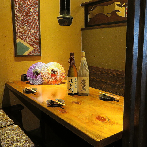 こじんまりとしてちょっとした隠れ家の様な2名様用の個室は、デートやじっくり語らいたい時におすすめのお席◎また、お1人様でも気軽にご利用いただけるカウンター席もご用意しております。ひとりの時間をゆったりと楽しむのも、スタッフとの会話を楽しむのも◎美味い料理とお酒に舌鼓を打ちながら、思い思いのひとときをお過ごしください☆