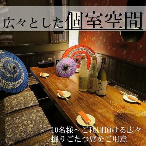 2~10名様用の掘りごたつ個室をご用意。周りを気にせずくつろげる空間は少人数でのお食事にもご宴会にも◎