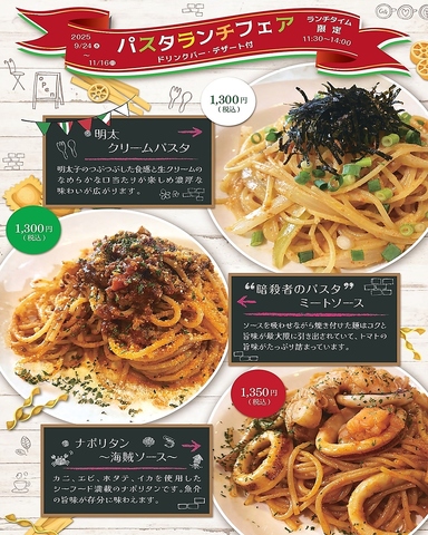 令和7年9月24日からランチ限定でパスタフェアを開催!シェフこだわりのソースが麺と良く絡んでいます。