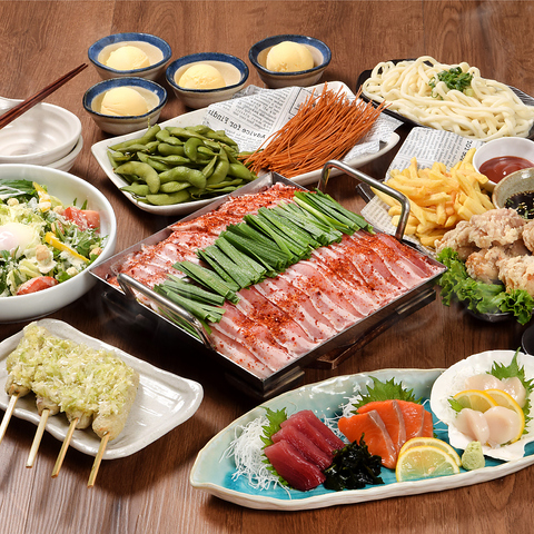 大人数での宴会に最適な居酒屋として、広々としたテーブル席をご用意。飲み放題付きコースも充実しており、個室の利用も可能です。設備や環境が整っているので、幹事様が安心してご予約いただけます。