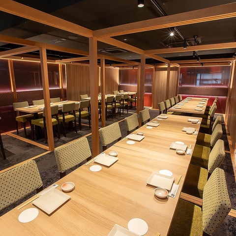 テーブルタイプ完全個室を完備!落ち着いた雰囲気での完全個室となっております♪広々とした和の空間が漂うお席でのお食事、お酒をご堪能下さいませ!他にも個室席は多数完備しております。