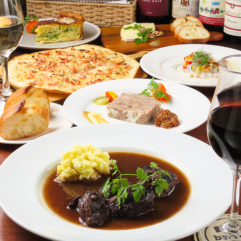コースには、前菜やお肉料理、デザートまでついてくるお得なプランです。その日の仕入れ状況により、内容が変わります。また、その時の旬の食材を使ったメニューもご提供しております。是非、ご宴会やパーティーなどでのご利用にオススメです。