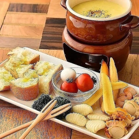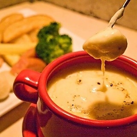 ラクレットチーズたっぷりの濃厚チーズフォンデュをお楽しみください!