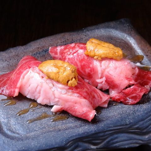 皆さんが大好きな素材をあわせました!うに・イクラ・とびこを和牛にのせて、卵黄につけて楽しむ…。今日だけ自分にご褒美を!