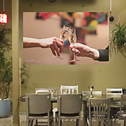 【プロジェクター】プロジェクターとスクリーンをご用意しております。お好きなムービーを流していただくことが可能です。