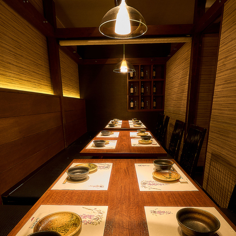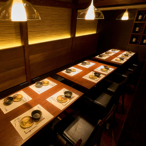 ゆったり落ち着いた完全個室。6名様のご利用がおすすめです。気の置けないご友人との飲み会や女子会、接待にもご利用いただけます。