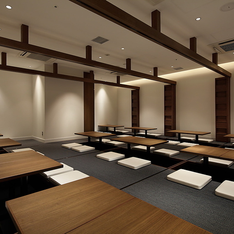 一流デザイナーが手掛けたスタイリッシュな店内★間接照明で落ち着いた雰囲気!!どちらのお席に座ってもゆったりとお寛ぎ頂けます !4名様前後のお席や、最大80名様のエリア貸し切りなど充実♪団体様のご予約はお気軽にお電話ください!