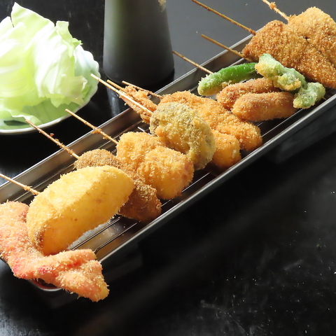 一本一本丁寧に揚げたてを提供する自慢の串かつは、定番の肉や野菜から、変わり種まで種類豊富にご用意しております。お好きなものを少しずつ楽しむのもおすすめ◎一本121円(税込)からと、リーズナブルにお楽しみいただけます♪学生さんのお集まりにもおすすめです!ぜひ、当店こだわりの串かつをお楽しみください。