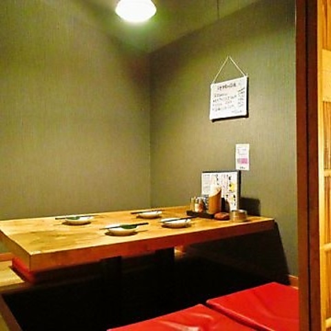 友達とゆったりとした時間を過ごすのに最適な個室。掘りごたつのスタイルで、足を伸ばして快適に過ごせます。最大4名まで利用できるため、親しい仲間との特別なひとときを楽しむのにうってつけです★ 落ち着いた雰囲気が心地よく、リラックスしながら会話が弾むことでしょう♪