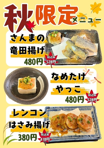 9/1スタート!秋限定メニュー♪秋の味覚をえんでぜひお楽しみください☆